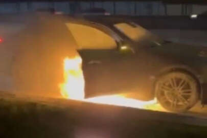 Cadde üzerinde seyir halindeki otomobil, teker kısmından alev almaya başladı. Çıkan yoğun duman sonrası aracını sağ şeride çeken sürücü, otomobilin alev aldığını gördü.