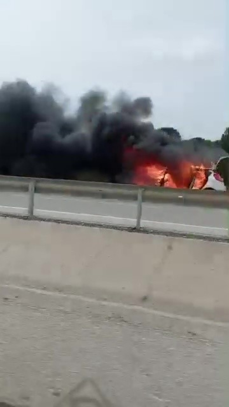 Bursa'da Karacabey-Bandırma istikameti üzerinde seyir halinde olan bir otomobil henüz bilinmeyen bir nedenle alev aldı. Kısa sürede büyüyen yangın, çevredeki sürücülerde paniğe yol açtı.
