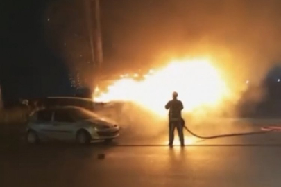 Yangın, merkez Osmangazi ilçesinde meydana geldi. Seyyar olarak kokoreç satılan araçta henüz bilinmeyen bir sebeple yangın çıktı. Yangını gören vatandaşlar durumu itfaiye ekiplerine bildirdi. İhbar üzerine olay yerine gelen itfaiye ekipleri yangını söndürürken, araç kullanılamaz hale geldi. Alev alev yanan araç, amatör kameraya yansıdı.