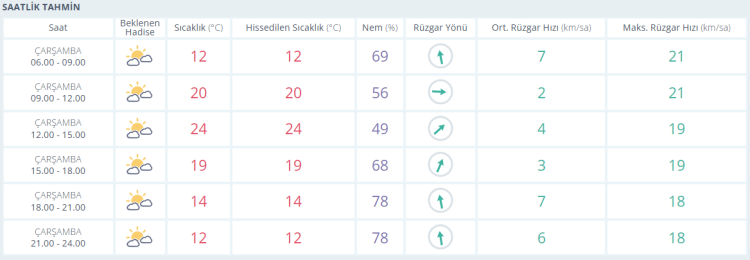 PERŞEMBE: Parçalı bulutlu, 24 derece