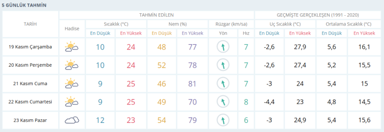 İŞTE BURSA İÇİN 5 GÜNLÜK HAVA DURUMU TAHMİNİ (19 KASIM 2025)