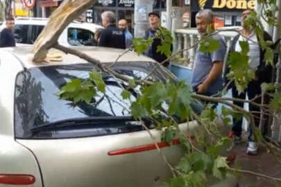 Bursa'da şiddetli rüzgara dayanamayan ağaç otomobilin üzerine düştü