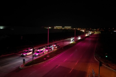 Bursa'da sokak lambaları, meme kanseri farkındalığı için pembe yandı