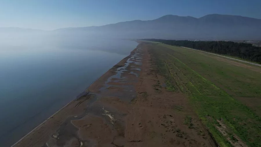 Bursa'nın Orhangazi ilçesi sahilinde bulunan İznik Gölü'nde su yaklaşık 300 metre çekildi. Daha önce teknelerin yanaştığı iskele bölgesinde artık yürünebildiği görülürken, göldeki ciddi su kaybı dron ile havadan görüntülendi. Geçen yıl su kesintilerinin yaşandığı Bursa'da üç barajda dolup taşarken, İznik Gölü'nde yoğun yağışlara rağmen su çekilmesi üreticileri ve bölge halkını kara kara düşündürüyor.