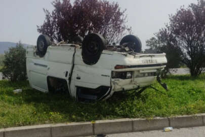 Bursa'da takla atan minibüsteki 2 kişi yaralandı