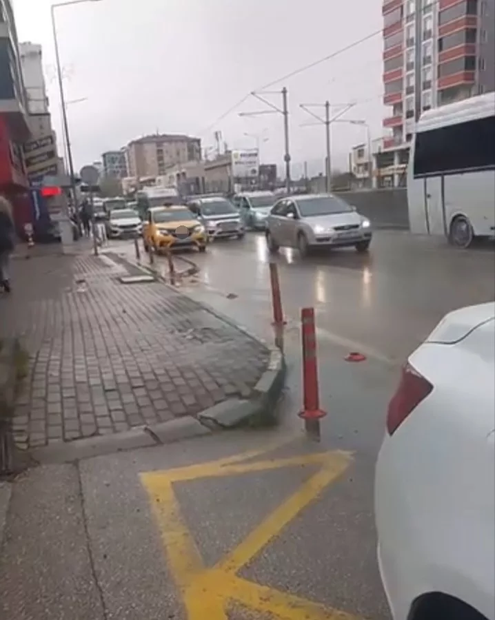 Bursa'da geri geri ilerleyen taksi sürücüsü tehlike saçtı o anlar cep telefonu kamerasıyla kaydedildi.