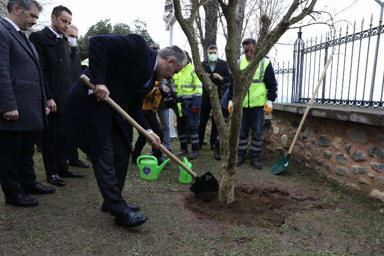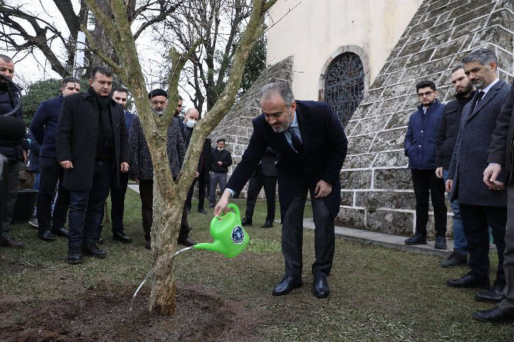 Önce türbeyi ziyaret edip, padişahın ruhuna dua eden Başkan Aktaş, daha sonra nar ağacını da kendi elleri ile dikip, can suyunu da kendisi verdi.