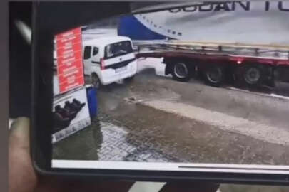 Edinilen bilgiye göre, yağmur nedeniyle kayganlaşan yolda sürücüsünün kontrolünden çıkan tır, park halindeki hafif ticari araca dorsesi ile çarptı.