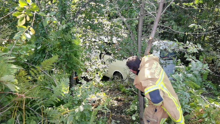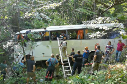 Kütahya Tavşanlı’dan Bursa’nın Mudanya ilçesine gelen tur otobüsü İnegöl ilçesi Tahtaköprü Mahallesi Kocayayla mevkiinde şarampole yuvarlandı.