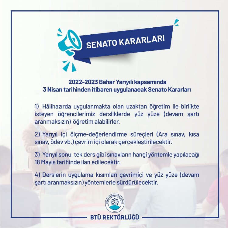 2022-2023 Bahar Yarıyılı kapsamında 3 Nisan tarihinden itibaren uygulanacak Senato Kararları