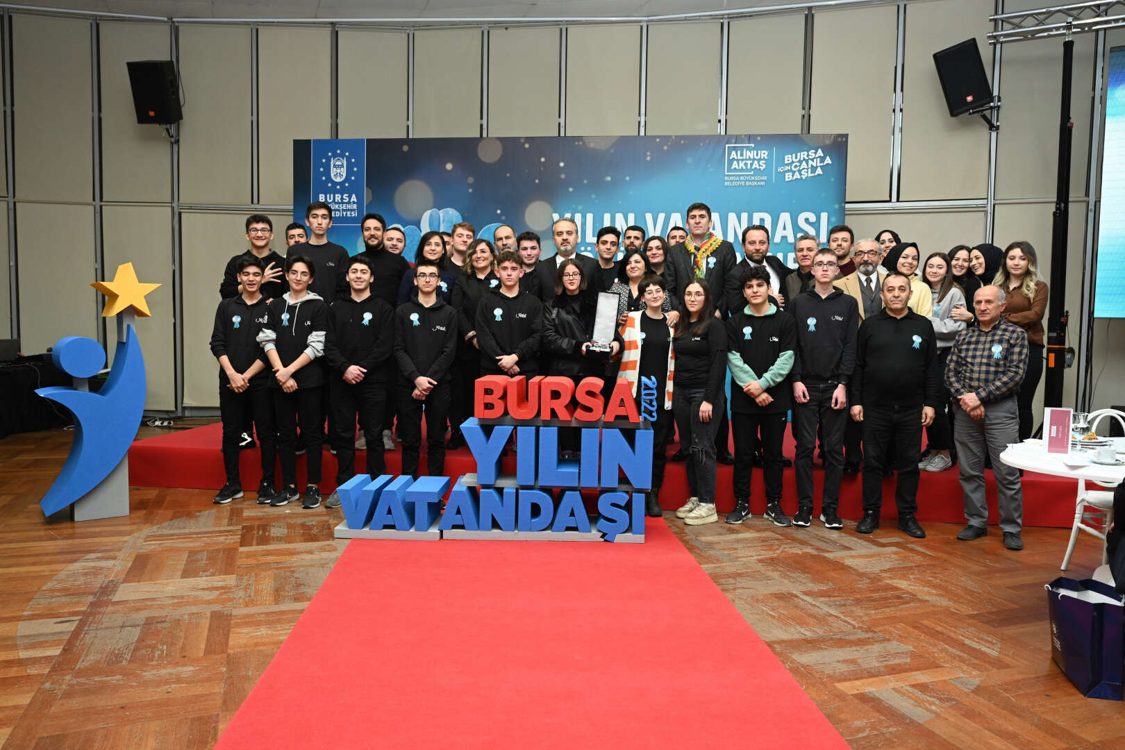 Yılın Vatandaşının açıklandığı törene Bursa Büyükşehir Belediye Başkanı Alinur Aktaş, İl Milli Eğitim Müdürü Serkan Gür ve Bursa Keent Konseyi Başkanı Şevket Orhan ile ayın vatandaşları katıldı. Büyükşehir Belediye Başkanı Alinur Aktaş, yaptıkları iyilik hareketleriyle örnek oluşturan tüm kişi ve gruplara teşekkür etti. İki yıl önce başlattıkları ayın vatandaşı uygulamasının adeta kartopu misali büyüdüğünü ifade eden Başkan Aktaş, "Bu ülkeye, bu şehre değer katmak, bir canlının, bir insanın hayatına dokunmak çok değerli. Hele bunu tamamen gönüllü olarak, karşılık beklemeksizin yapmak çok kıymetli. Bu nedenle halk oylaması ile yılın vatandaşı seçilen öğretmenlerimizi gönülden kutluyorum. Yaptıkları davranışlarla hayatlara, gönüllere dokunan tüm iyilik elçilerimize teşekkür ediyorum” dedi. Bursa’da 2022 yılının ‘yılın vatandaşı’ seçilen Hürriyet Mesleki ve Teknik Anadolu Lisesi öğretmenleri, kristal plaketlerini Büyükşehir Belediye Başkanı Alinur Aktaş’ın elinden aldı.