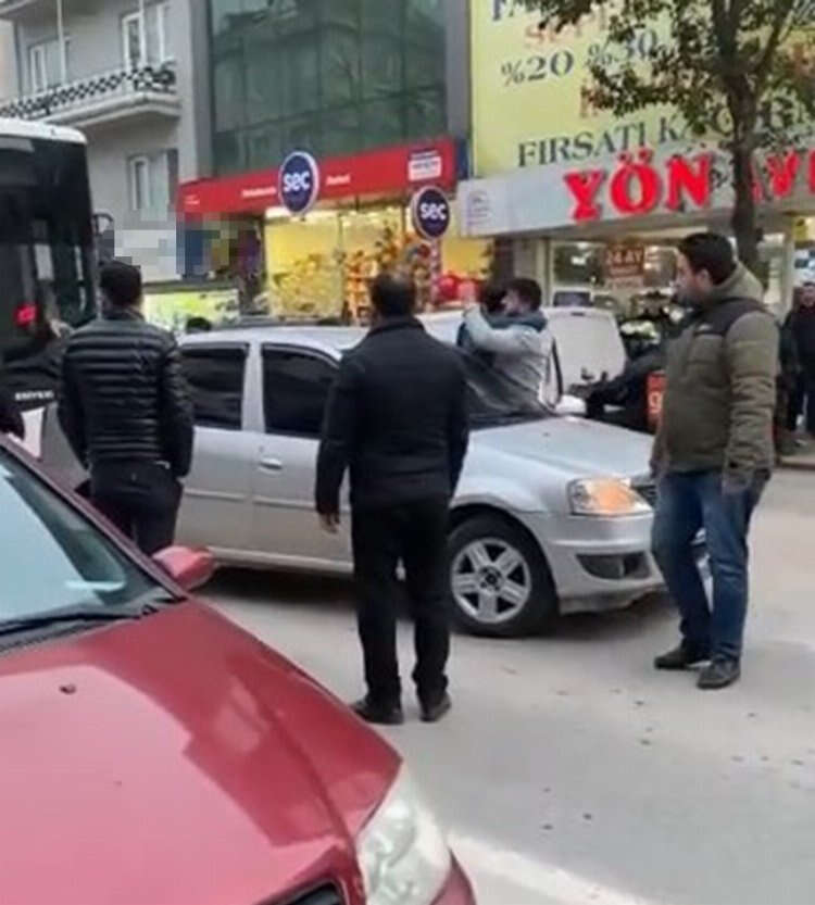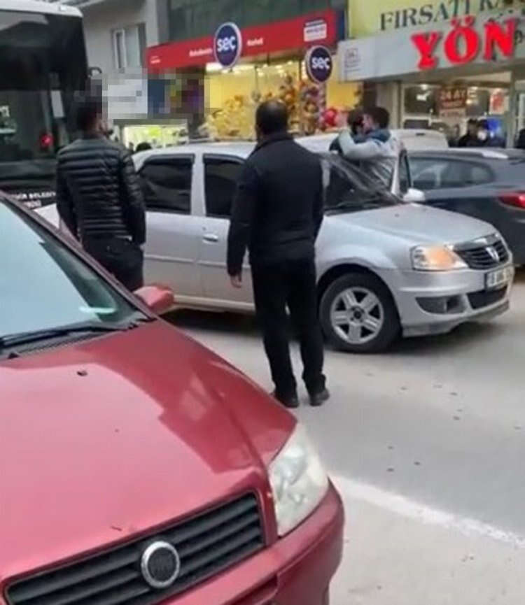 Edinilen bilgiye göre, halk otobüs şoförü ile otomobil sürücüsü, yol verme meselesi yüzünden tartışmaya başladı.
