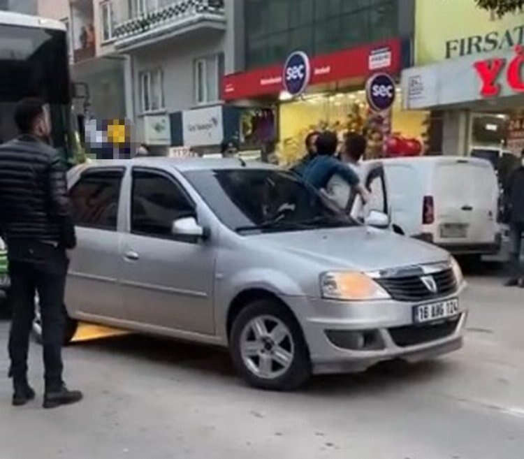 Bursa'da halk otobüs şoförü ile otomobil sürücüsünün yol verme tartışması kavgaya dönüştü. Çevredeki vatandaşların araya girmesiyle kavga son buldu.
