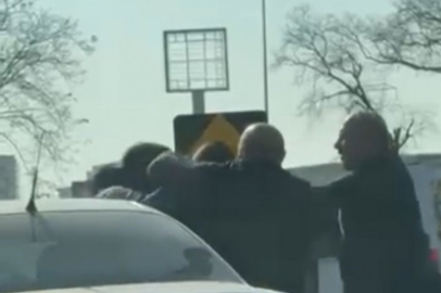 Bursa'da iki sürücü yol verme tartışması nedeniyle araçlarından inip, tekme tokat kavga ettiler. Caddenin ringe döndüğü anlar kameraya anbean yansıdı.