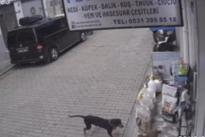 Bursa'da bir köpeğin kediyi kıskanıp dolu mama kabını alarak karşı kaldırıma geçtiği anlar gülümsetti.