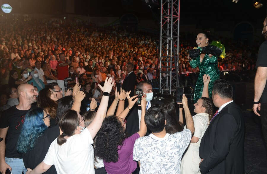 Şarkıları, dansçılarıyla birlikte yaptığı sahne performansıyla seyircileri hayran bırakan ünlü sanatçı, söylediği Alev Alev şarkısıyla mest etti.