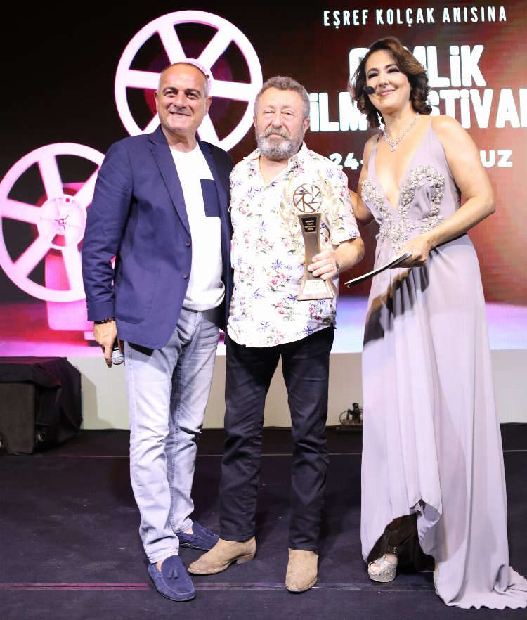 Usta isimler Tamer Yiğit, Perihan Savaş, Şemsi İnkaya ve oyuncu Güven Kıraç, ‘’Sinemaya Emek Ödülleri’’ni Gemlik Belediye Başkanı Mehmet Uğur Sertaslan’ın elinden aldı.