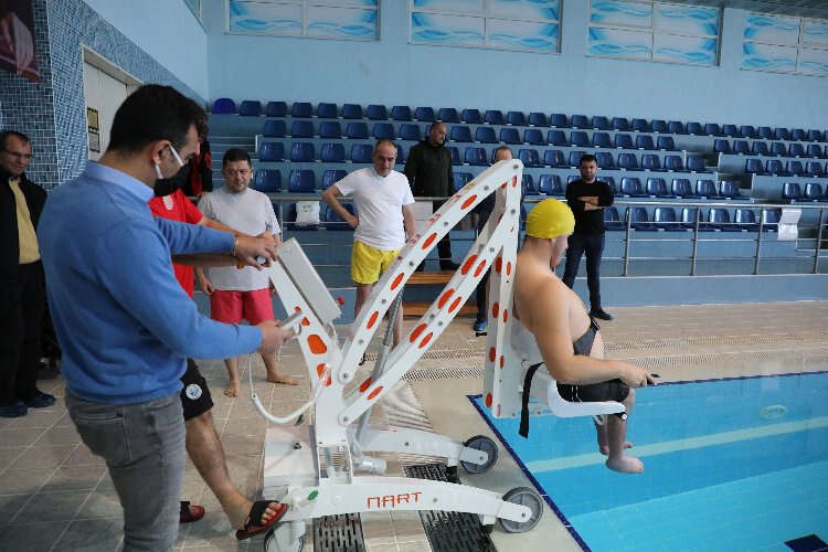 Sosyal Yaşam Merkezi’nde bulunan yarı olimpik havuza engelli vatandaşların kullanması için asansör kurdu. Bu asansörle artık fiziksel engelli vatandaşlar havuza profesyonel gözlemciler eşliğinde girip yüzebilecek.