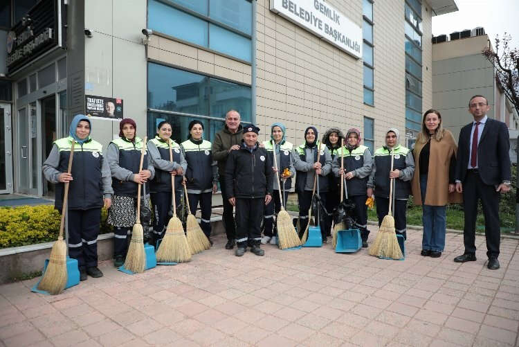 Gemlik Belediye Başkanı Mehmet Uğur Sertaslan, Belediye Başkan Yardımcısı Zeynep Akış Serintürk ve Temizlik İşleri Müdürü Ömer Uslu; Temizlik İşleri Müdürlüğü'nde göreve başlayan kadınları tebrik ederek kolaylıklar diledi.