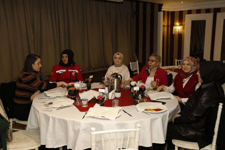 Konuşmalar sonrası sohbet ile devam eden kadınlar günü kutlama programında, misafirlere çiçek de hediye edildi.