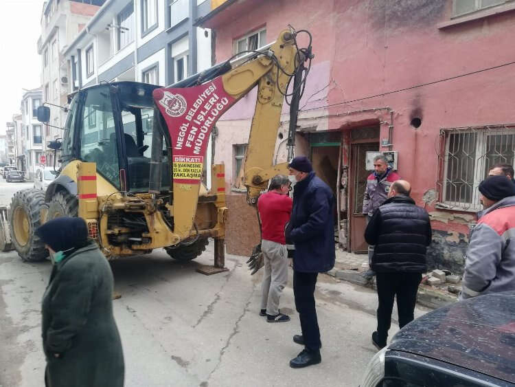 Bursa İnegöl'de tehlike arz eden binalar yıkıldı