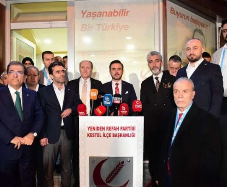 AK Parti’den istifa eden ve bugün Yeniden Refah Partisi’ne geçtiğini duyuran Kestel Belediye Başkanı Önder Tanır, üyelik rozetini Fatih Erbakan tarafından takıldıktan sonra başkanlık için Yeniden Refah Partisi'nden aday olduğunu açıkladı.