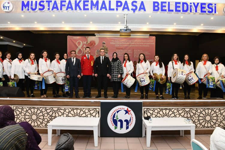 Programda konuşan Mustafakemalpaşa Belediye Başkanı Mehmet Kanar ‘’Hayatımızın her anında, dokunuşlarıyla hayatlarımızı ve dünyayı güzelleştiren tüm kadınların kadınlar gününü kutlarım. İlkçağdan bu yana insanlık âlemi erkek egemen bir toplum olarak bilinirdi. Tarih boyunca ilk çağdan bu yana her dönemde kadın ön planda oldu. Kurtuluş Savaş’ının kahramanı olan Şerife Bacıdan… Türkiye’nin ilk doktor’u Safiye Ali’den… İlk kadın öğretmen Refet Angından… İlk Zabıta Memuru Afife İpek… Ve evin çocukları için dişini tırnağına takarak üreten, üretmeye devam eden annelerimiz, ablalarımız, kardeşlerimiz… Cephaneler ıslanmasın diye battaniyesini cephaneye sarmış bebeğini de sarılıp onun donmaması için uğraş veren Şerife Bacının hakkı… Tüm hastalara şifa olan Safiye Ali’nin ve nicelerinin hakkı ödenmez ödenemez” dedi.