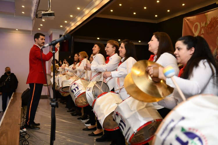 Her dokunuşuyla dünyayı güzelleştiren kadınların 8 Mart programı, Cumhurluk Alanında Atatürk Anıtına çelenk sunma töreni ile başladı. Törenin ardından Belediye Düğün Salonu’nda devam eden programda gösteri yapan “Belediye Kadın Ritim Grubu” performansıyla göz doldurdu.
