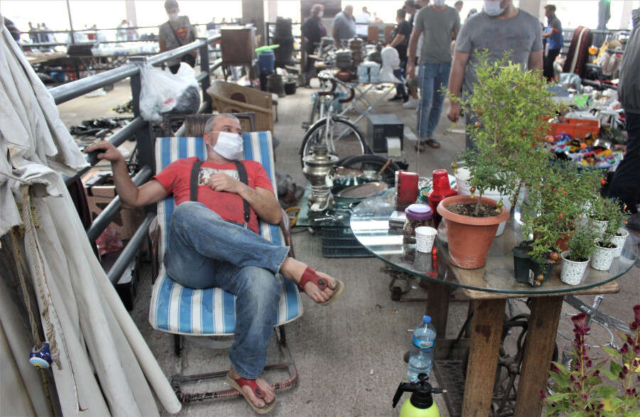 Bursa'da modern pazar yerinde hurda eşyalar satışa sunuluyor.