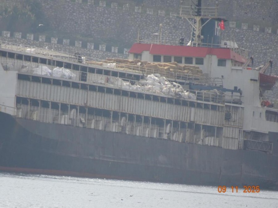 Balıkesir'in Bandırma ilçesi açıklarında demirleyen Spiridon-II isimli gemi yem, saman ve su takviyesi için Bandırma Çelebi limanına yanaştığında endişe verici görüntüler kaydedildi.