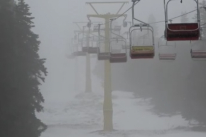 Kış turizmi destinasyonlarından Uludağ'a mayısta yağan kar pistlerin bir kısmını beyaza bürüdü.
