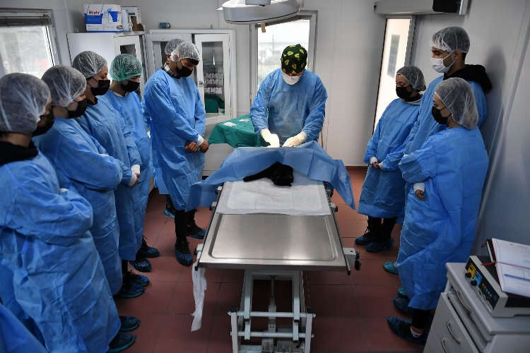 Barınak hakkında yetkililerden bilgiler alan ve barınakta bulunan hayvanları seven öğrencilere daha sonra ameliyathanede uygulamalı olarak kısırlaştırma operasyonu konusunda eğitim verildi.