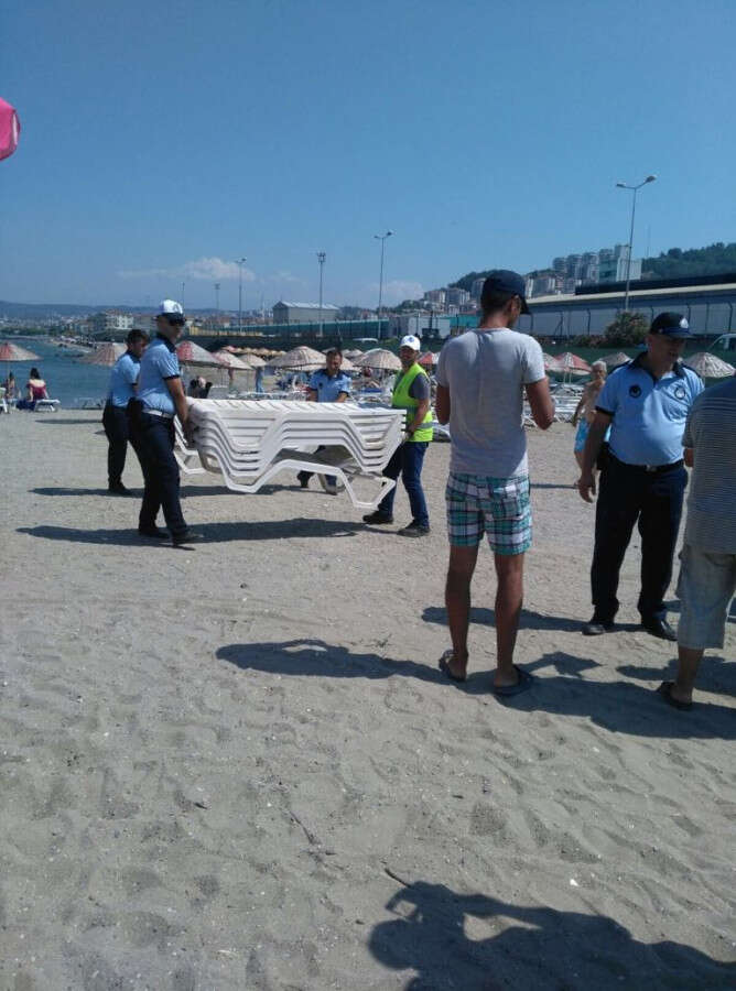 Bursa Büyükşehir Belediyesi Zabıta Dairesi Başkanlığı'na bağlı ekipler, sorumluluk sahası içinde bulunan Mudanya, Güzelyalı, Kurşunlu ve Gemlik sahillerini işgal edip, buralarda faaliyet gösteren işletmelere yönelik operasyon düzenledi. Sahili kapatarak izinsiz olarak vatandaşlara şezlong kiralayan işletmelerin malzemelerine el konulurken, haklarında cezai işlem uygulandı.