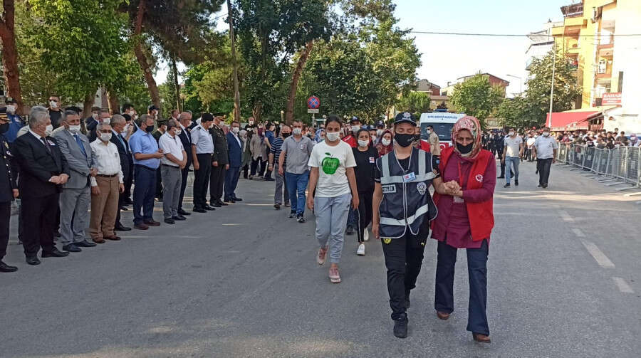 Burdur'da kimlik sorduğu sırada kaçan şüphelinin savurduğu tekmeden kurtulmak isterken düşüp başını duvara çarpan ve 16 gündür tedavi gördüğü hastanede şehit olan 27 yaşındaki polis memuru Selcan Akbaş memleketi Bursa'da son yolculuğa uğurlandı.