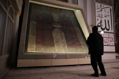 Bursa'da tarihi Ulu Cami'nin içindeki özel müze bölümünde camlı alanda sergilenen Kabe kapısı örtüsü, bakımının yapılması ve kopan püsküllerinin yerine dikilmesinin ardından yeniden ziyarete açıldı.