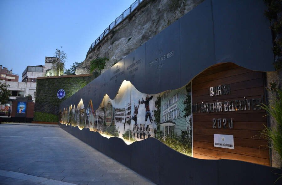 Yenileme projesi kapsamında yapılan 'İlklerin Şehri Bursa' temalı anı duvarı, şehrin merkezindeki meydana ayrı bir anlam kazandırdı. 30 metre uzunluğunda ve 3.25 metre yüksekliğinde tasarlanan duvar, bazalt taş içinden tarihe açılan renkli bir pencere görünümüyle ziyaretçilerin ilgisini çekiyor. Bursa'nın ilklerinin parlak, akrilik zemine basılan resimlerle betimlendiği anı duvarı, tüm zamanlara açılan değerli bir anıt niteliği taşıyor.