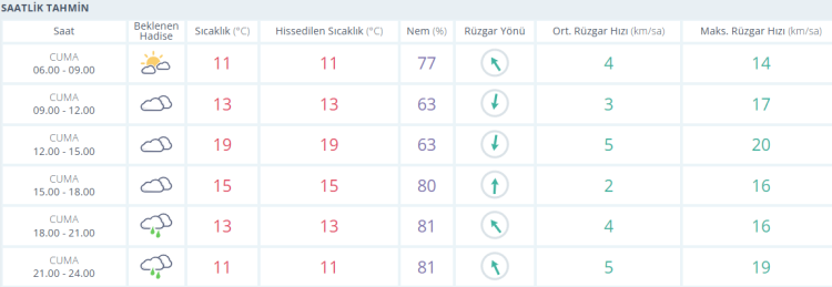 BURSA İÇİN SAATLİK HAVA DURUMU TAHMİNİ (5 ARALIK 2025)