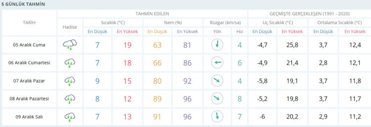 BURSA İÇİN 5 GÜNLÜK HAVA DURUMU TAHMİNİ (5 ARALIK 2025)