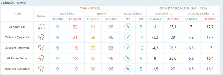 İŞTE BURSA İÇİN 5 GÜNLÜK HAVA DURUMU TAHMİNİ (4 KASIM 2025)