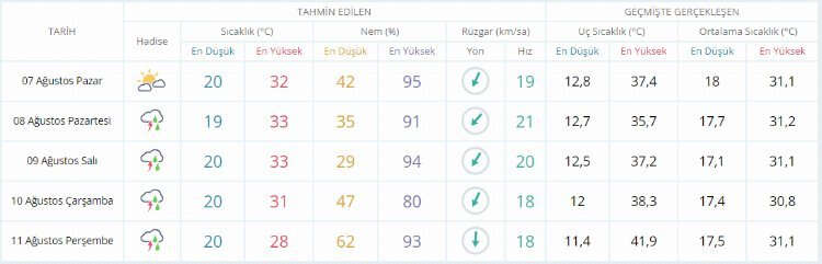 Bursa için 5 Günlük Hava Tahmin Raporu