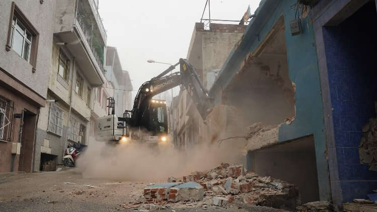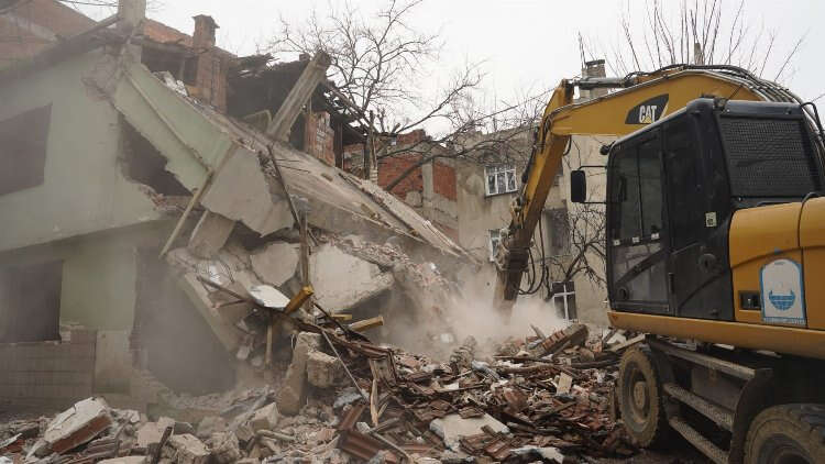 Huzur Caddesi’ni Mimar Sinan Bulvarı’na bağlayacak yolun açılması için kamulaştırılması tamamlanan binaların yıkımına başlandı.