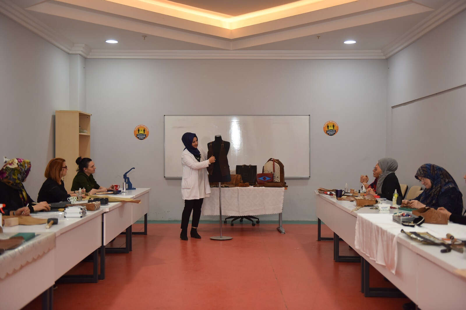Bursa'da Yıldırım Belediyesi, "Deri Tasarımı" branşı ile deri modasının inceliklerini meraklılarına öğretiyor.