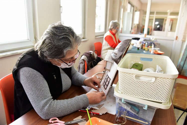 Güllük Mahallesi Hanımlar Lokali’nde haftanın 5 günü verilen kurslarda, kursiyerler evlerinde kullanmadıkları atıkları getirerek birbirinden farklı renkli ürünler ortaya koyuyor. Ev ekonomilerine katkı sağlayan kadınlar aynı zamanda israfın önüne geçerek kaynakların daha verimli kullanılmasını sağlıyor.