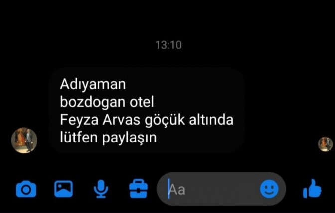 Kahramanmaraş'ta meydana gelen ve 10 ili birden etkileyen depremde Adıyaman'da bir otelin enkazında kalan Bursalı Feyza Arvas'tan saatlerdir haber alınamıyor.