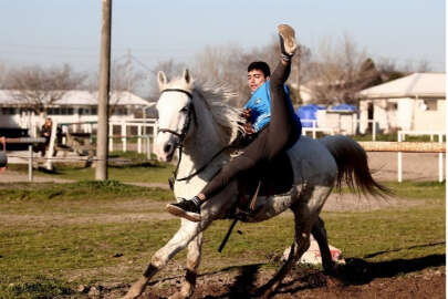 YABANCI JOKEYLERİN AKROBASİ GÖSTERİLERİNİ İZLEYEREK KENDİ UYGULADI