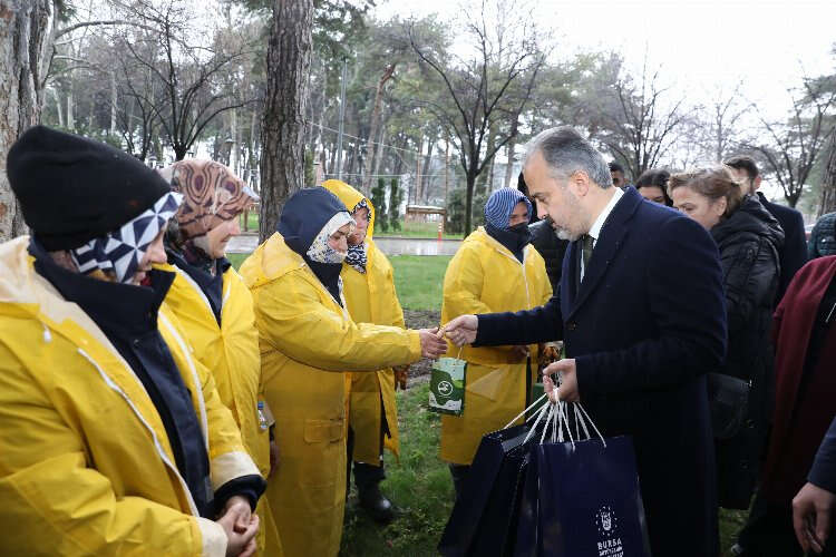 Etkinliğe katılmak için Merinos Park’a gelen Bursa Büyükşehir Belediye Başkanı Alinur Aktaş, ilk olarak parkta çiçek bakımı yapan TARIM A.Ş’nin kadın personelleri ile bir araya geldi. Bursa’nın yeniden yeşil kimliği kazanması için büyük bir özveriyle çalışan personelin kadınlar gününü kutlayan Başkan Aktaş, fular ve çiçek hediye etti.
