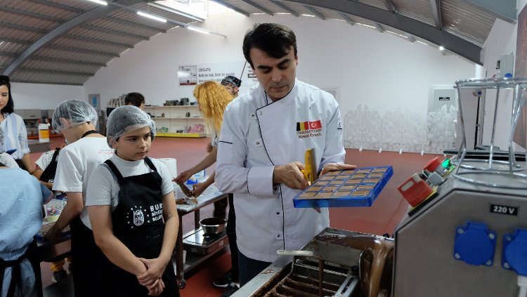 Uzun yıllar Belçika’da bulunan ve çikolata imalatı konusunda akademik eğitim alan ünlü çikolata şefi Mesut Kırımlı’nın da aralarında olduğu 4 girişimci tarafından geçtiğimiz yıl hizmete açılan Bursa Çikolata Müzesi, Büyükşehir Belediyesi’nin düzenlediği etkinlikte geleceğin çikolata şeflerini ağırladı. Yaklaşık 8 ton çikolata kullanılarak yapılan tarihi han, hamam, medrese, köprü ve cami gibi sembol eserlerin yanında devlet büyüklerinin portrelerinin de bulunduğu müzeyi bugüne kadar gezmek için gelen çocuklar, bu kez önlüklerini takıp, tezgah başına geçti.