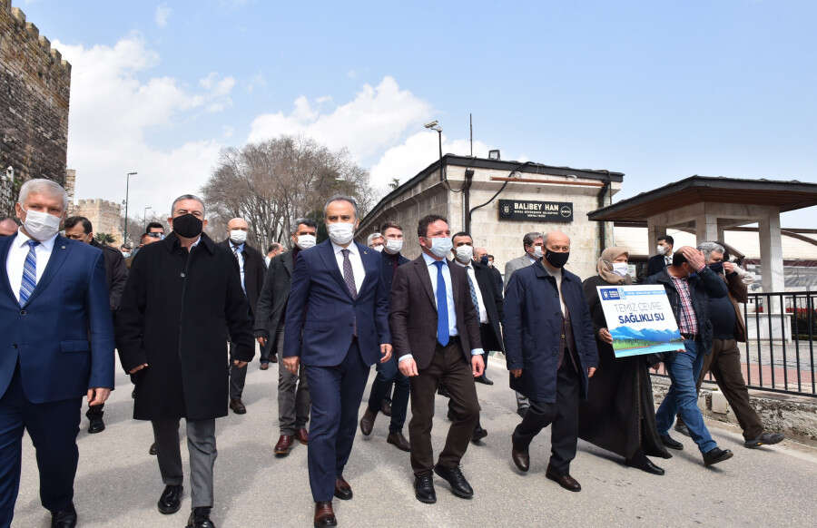 Bursa Büyükşehir Belediyesi ve BUSKİ Genel Müdürlüğü tarafından 22 Mart Dünya Su dolayısıyla düzenlenen kortej yürüyüşü ve törende su tasarrufunun önemine dikkat çekildi.