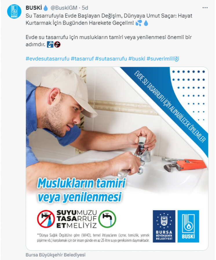 Bursa Su ve Kanalizasyon İşleri Genel Müdürlüğü su tasarrufu uyarısında bulundu.
