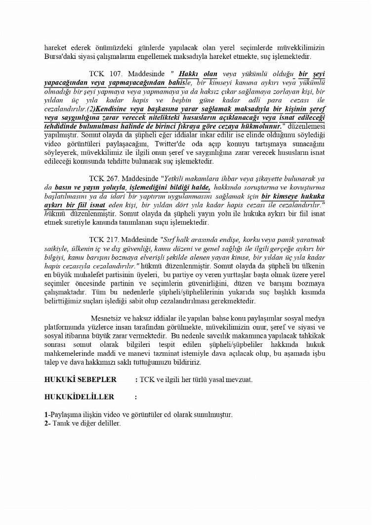 CHP BURSA İL BAŞKANI YEŞİLTAŞ'IN SUÇ DUYURUSU: